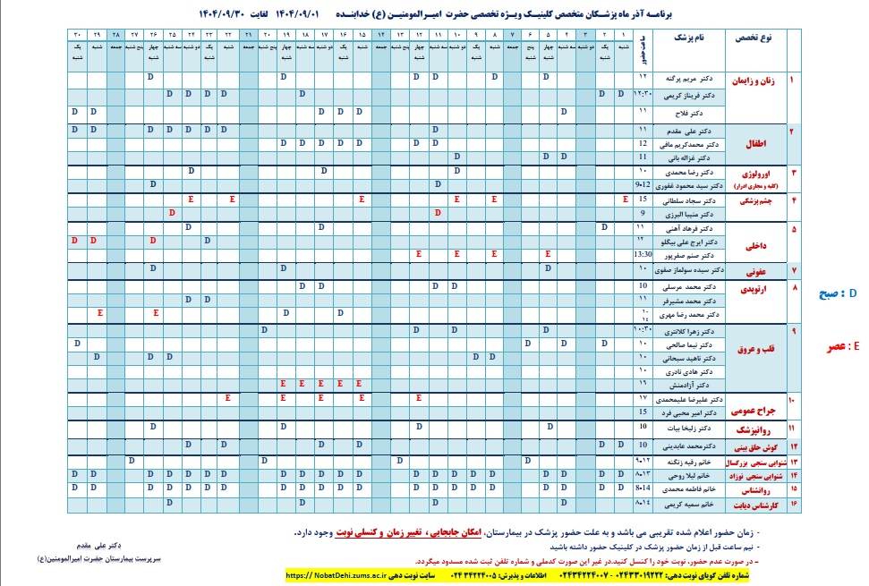 آدرس:خدابنده خیابان امام بلوار پرستار بیمارستان امیرالمؤمنین(ع)